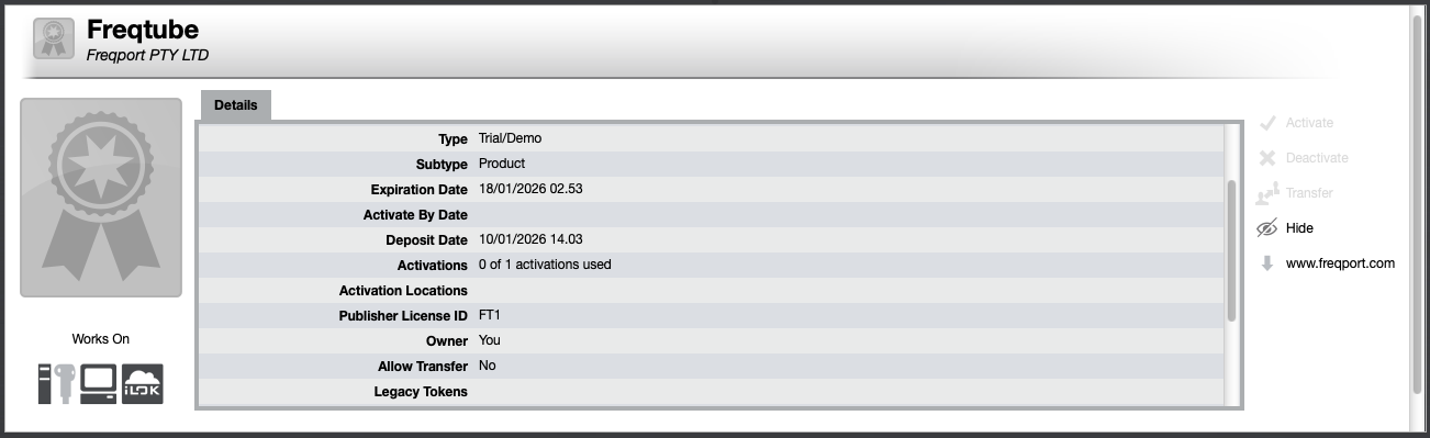 and hit next, you should now see the Freqtube License in your activated tab.