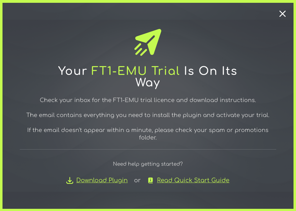 Check your inbox for the email containing FT1-EMU trial licence.